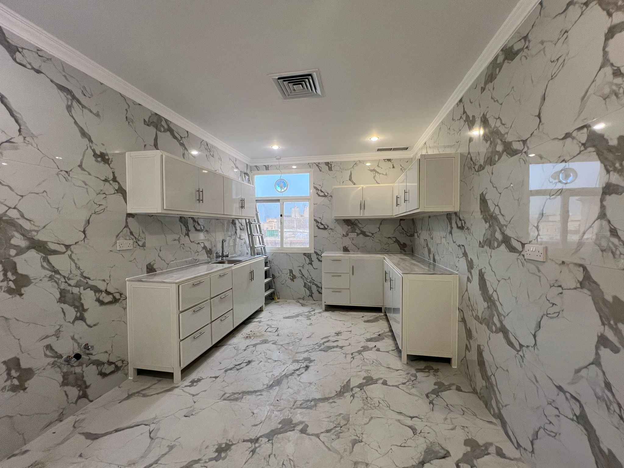 للإيجار شقة من فيلا في الفيحاء تشطيب جديد مودرين دور ثاني مصعد تتكون من 3 غرف نوم منهم 1 ماستر و 2 بينهم حمام + صالة كبيرة + شتراات + مطبخ مجهز بالكامل + غرفة خدامة مع حمامها + موقفين مضلل جنب بعض مطلوب عائلة صغيرة او معاريس الإيجار 600 KD للتواصل 66009197