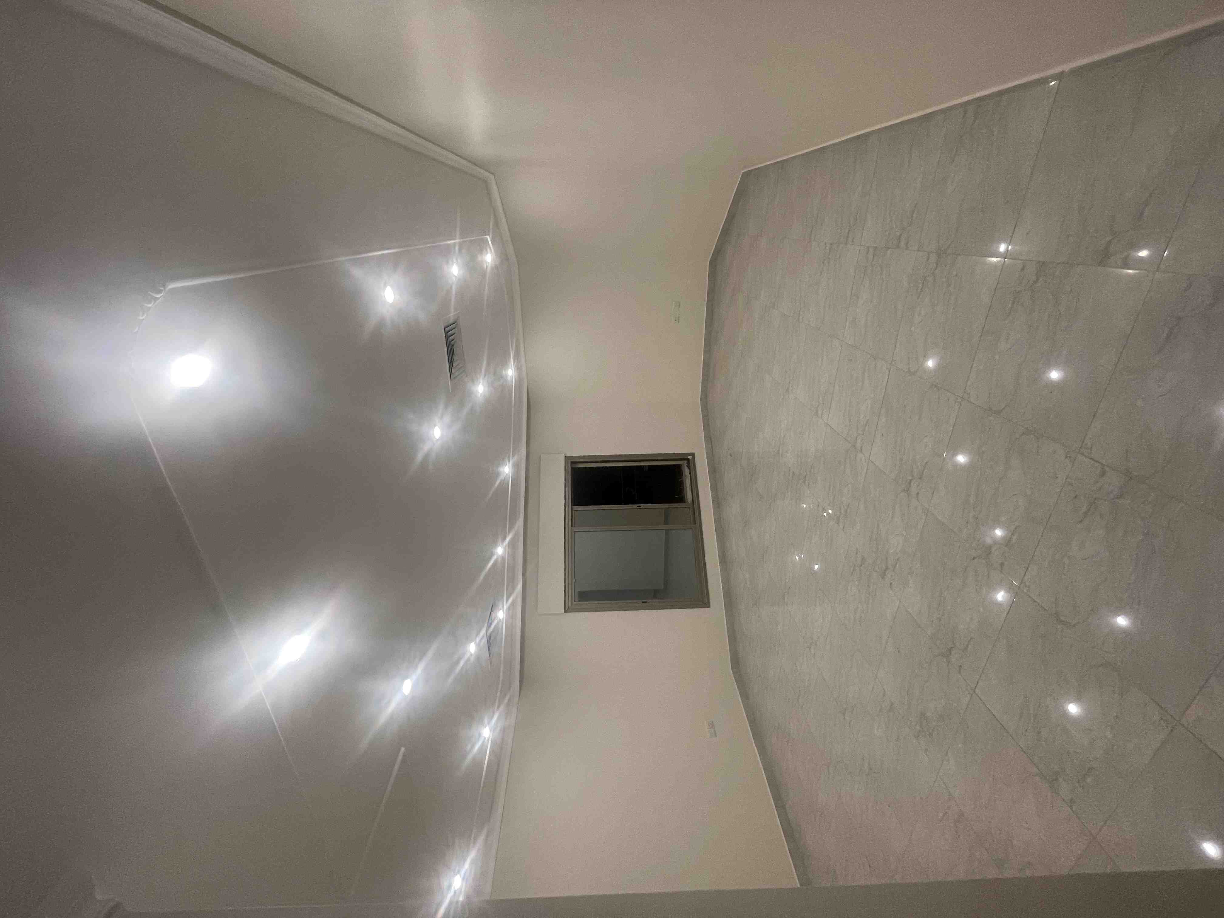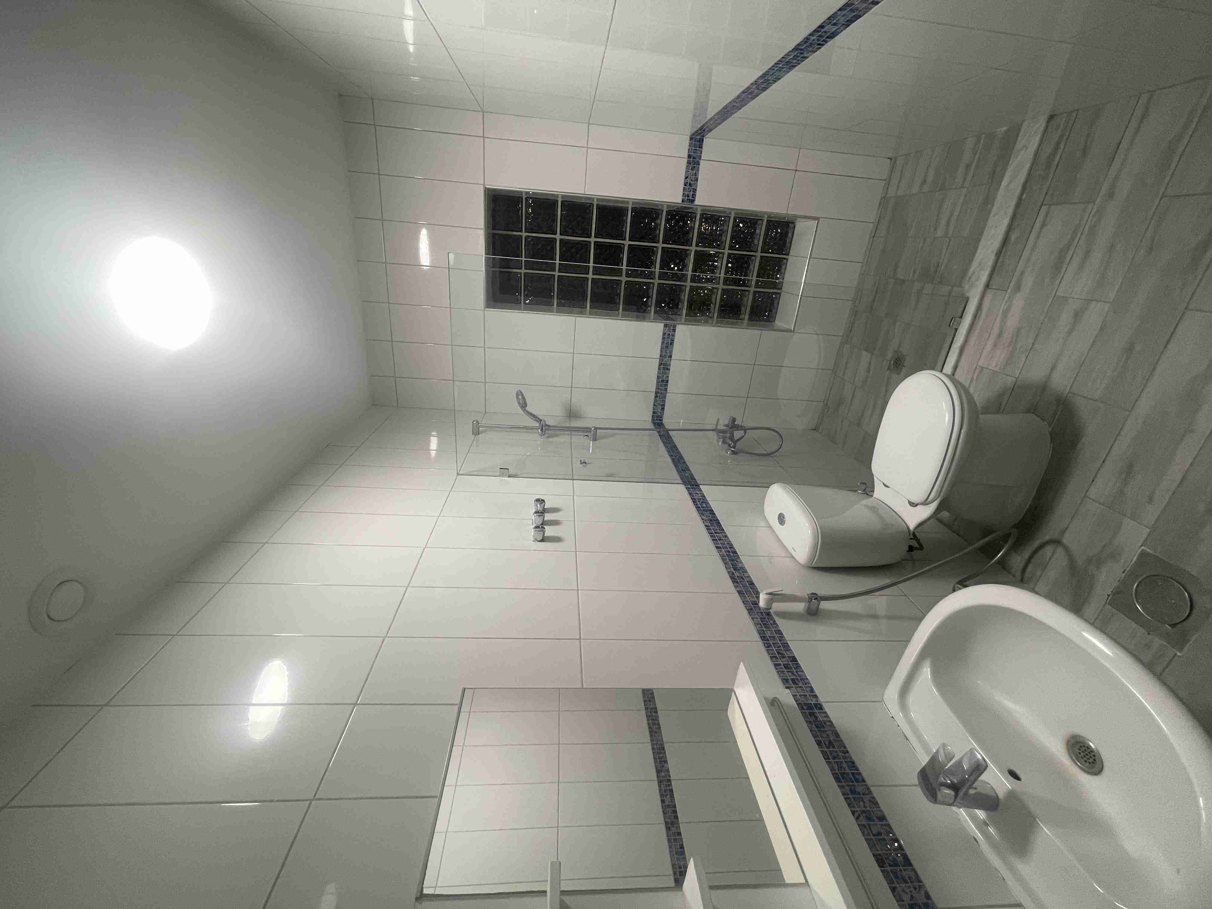مكون من ٤ غرف وصالتين ( ممكن تغيير الصالة الثانية الى غرفة) و٥ حمامات ومطبخ كبير ومطبخ تحضيري..سكن المالك.. مصفطين بلكونة بالصالة.. اجار ٨٥٠ ..