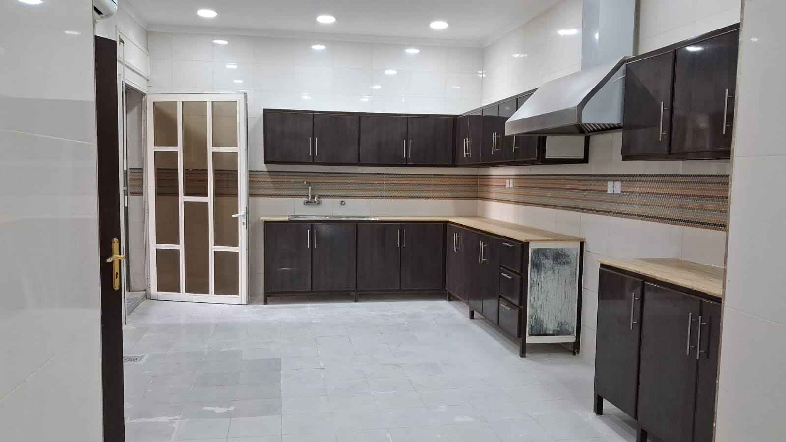 قطعه ٧ تشطيب ديلوكس. يتكون من ديوانيه مع مغاسل وحمام للضيوف منعزله عن الدور و صاله وصالون مع مغاسل وحمام للضيوف و ٤ غرف نوم منهم ٢ ماستر وغرفتين بينهم حمام و مطبخ مجهز كبير مع غرفه ثلاجات . وغرفه غسيل وغرفه خادمه مع حمام و ٣ مواقف سيارات مظللين الايجار ٩٠٠ دك يمنع الوسطاء ٩٧٩٩٠٠٩٥