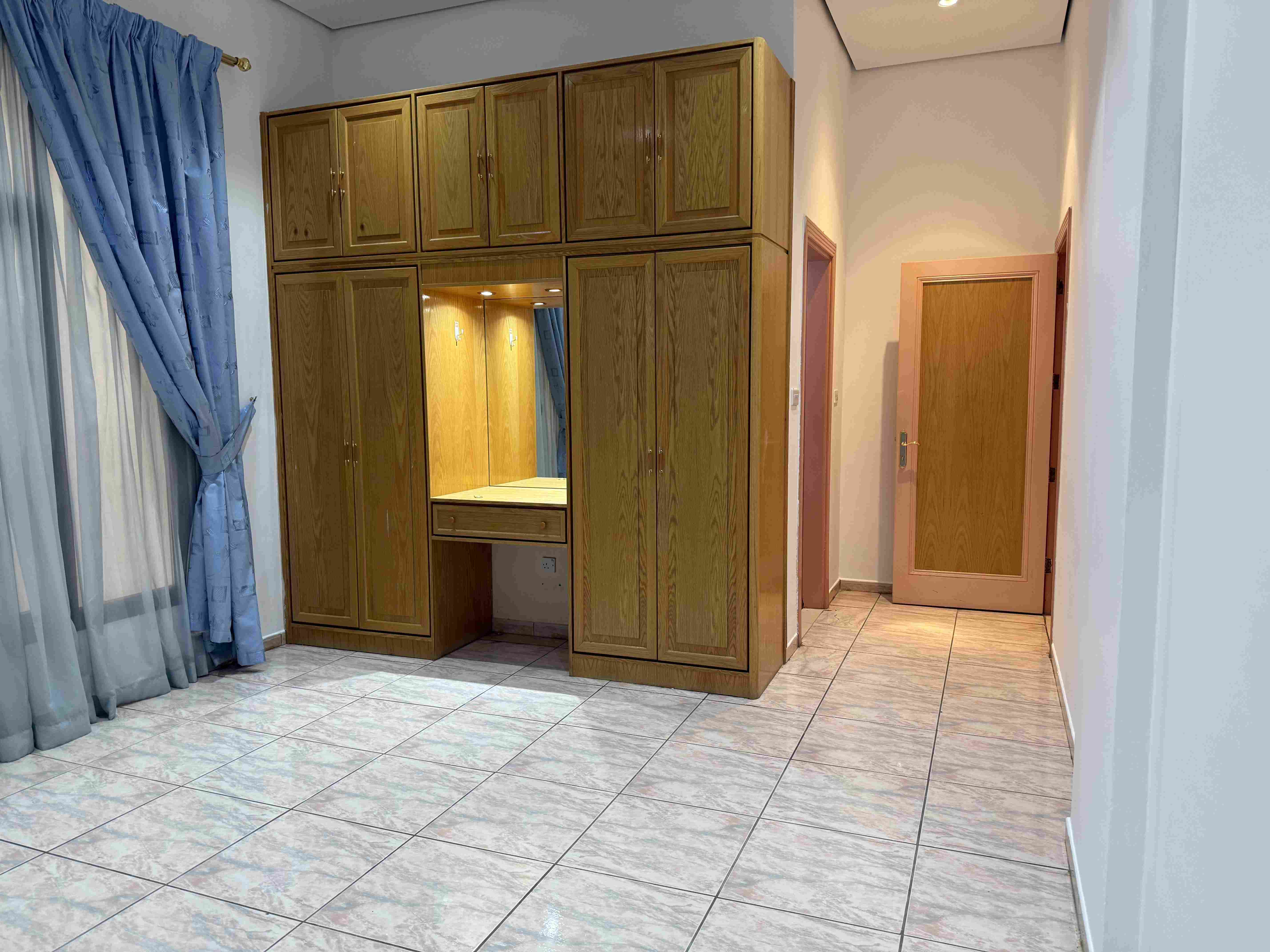 4 غرف نوم واسعة "منهم غرفتين ماستر" - وحمام ثالث يخدم الغرفتين - وجميع الغرف مزودة بكبتات ملابس - وصالة كبيرة مع حمام خاص لها - ومطبخ كبير مجهز - وغرفة عاملة مع حمام - الإيجار 850 دك - والفيلا مدخلها ومخرجها قريب جدا من خط الفحيحيل السريع - ( رقم الترخيص 1066 / 2025 )